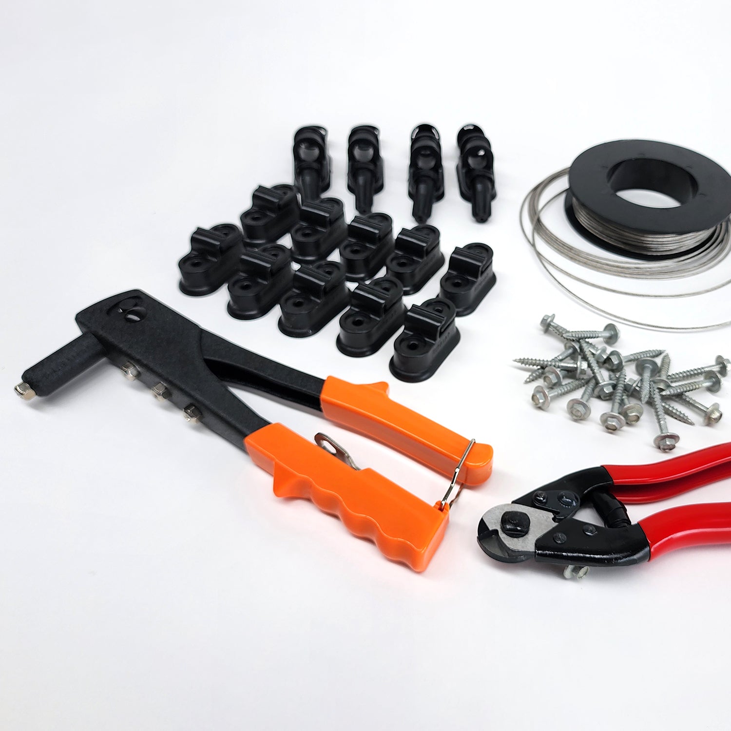 Includes wire cutters, hex driver, and rivet gun.