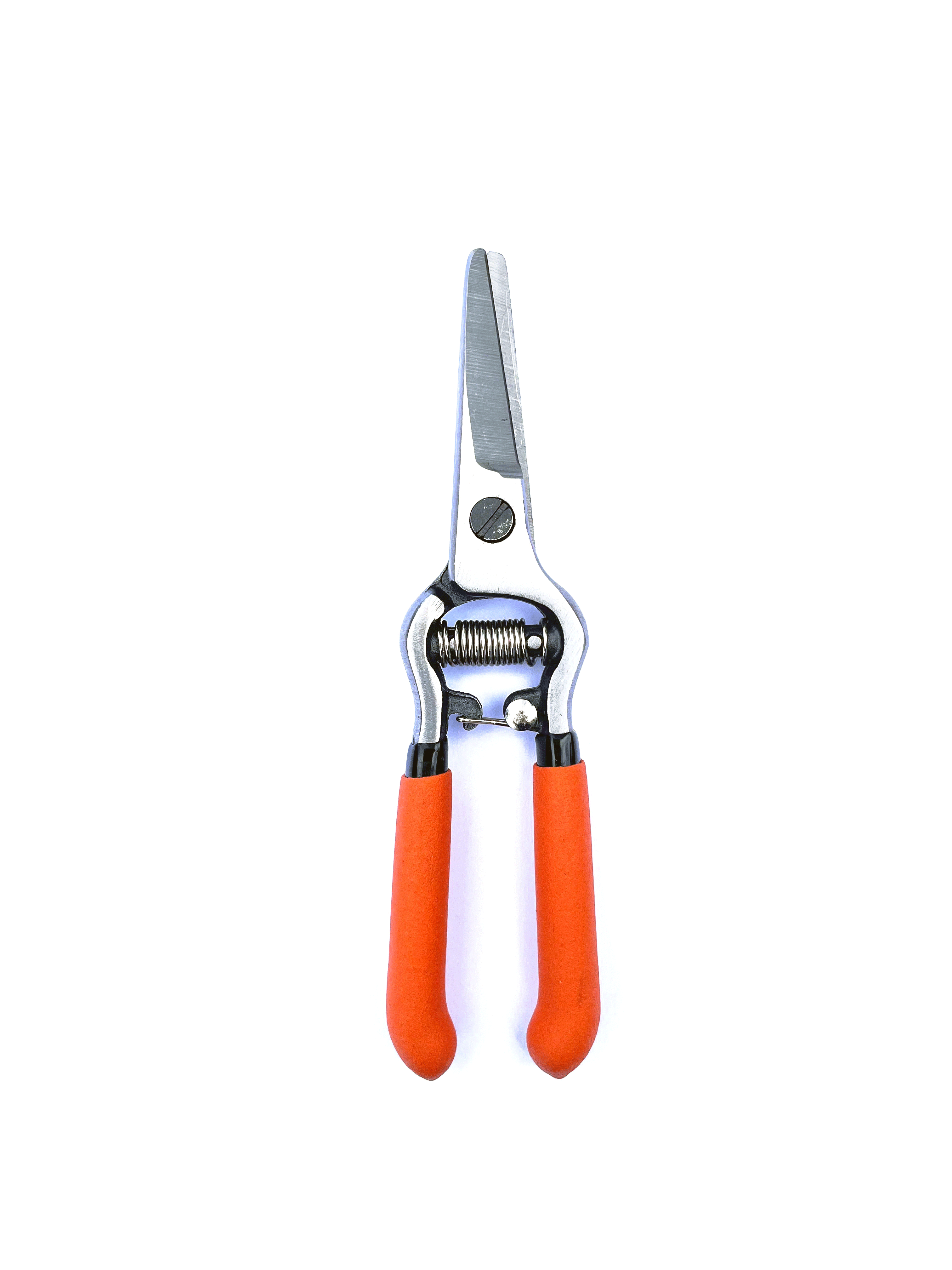 These small (15 cm) steel forged garden scissors are ideal for fruit harvest and keeping your Jasmine/growing vines in check. The blades allow you to get between fruit and branches with the rounded tips preventing fruit damage during harvest. These shears leave a clean cut which is less suseptible to plant and infection as well as encouring faster healing.